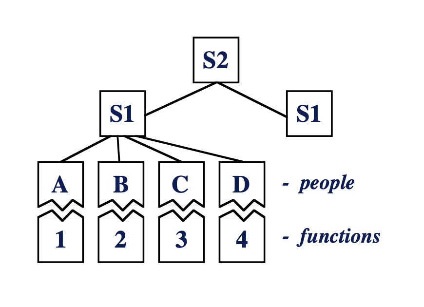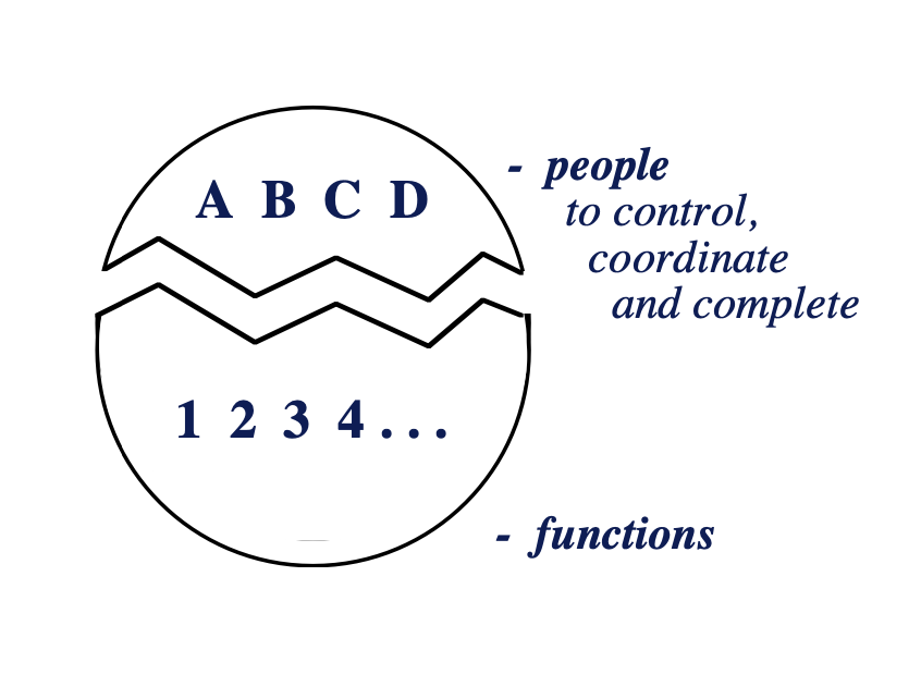 In this design principle, a hierarchy of dominance rules the organisation through the control of the function by people who are in the positions of power. The manager sits outside and ‘above’ the team, coordination, control and goals come from a level above where the work is actually performed.