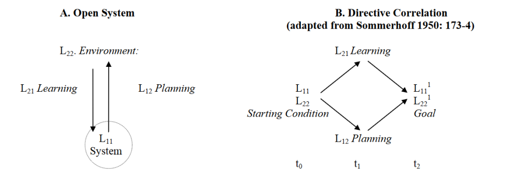 In OST technical language the system and environment is framed in the idea of ‘lawful’ relationships (L). As we are primarily interested the environment we define the system we are concerned with as L11. When considering the environment we define it as L22. Why the double digits? It is to show that the relationships and interactions are within the system i.e. L1 interacting with itself L1, hence we describe the system as a set of internal interactions L11.